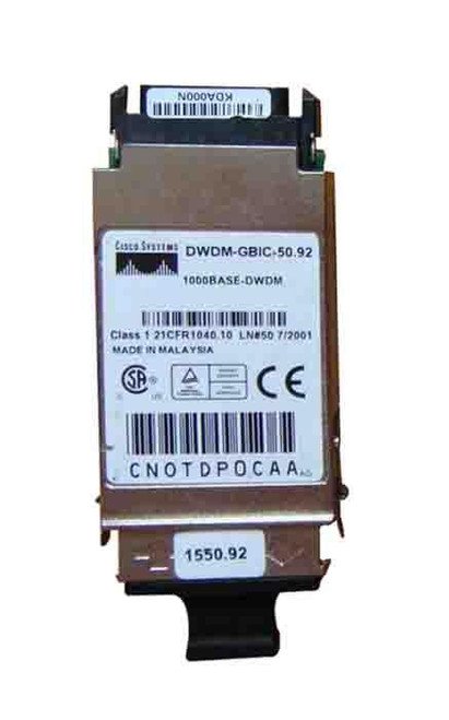 DWDM-GBIC-50.92 Cisco 1.25Gbps 1000Base-DWDM Single-mode Fiber 80km 1550.92nm Duplex SC Connector GBIC Transceiver Module (Refurbished)